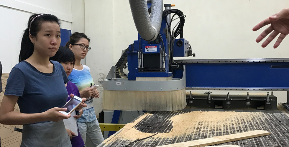 上課時間都是由早上九點到下午六點。抱持著好奇的心情第一天很早就到工廠晃晃。除了工作區域之外很大部分都是一台一台看起來非常複雜的機器以及很多不一樣的木材材料。